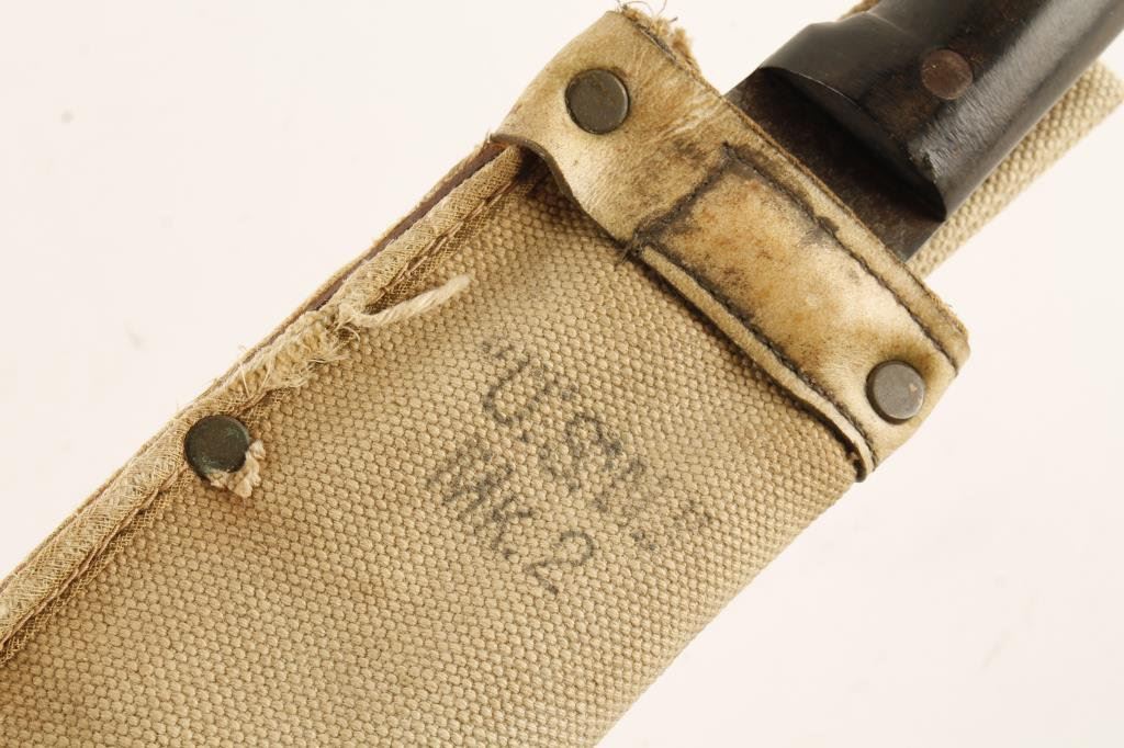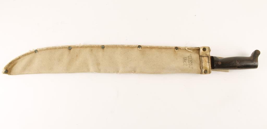 U.S.N.-marked machete by Collins with tan woven scabbard. Est.: $50-$100