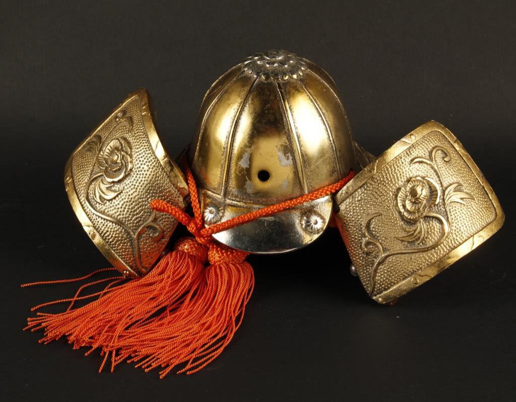 Miniature Samurai helmet in brass; approximately 4” x 9” overall. Est.: $75-$150.