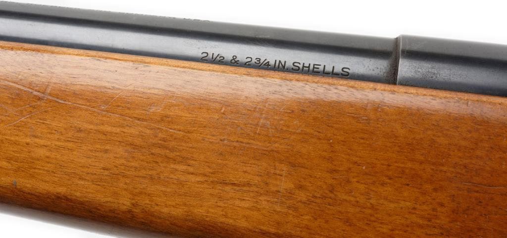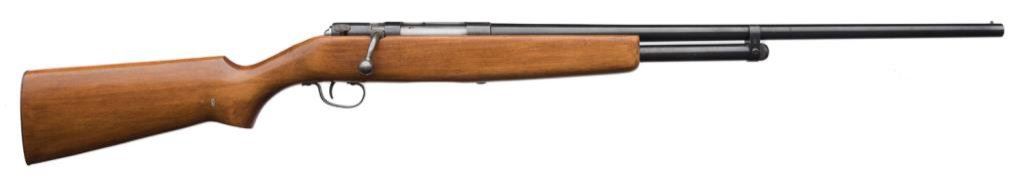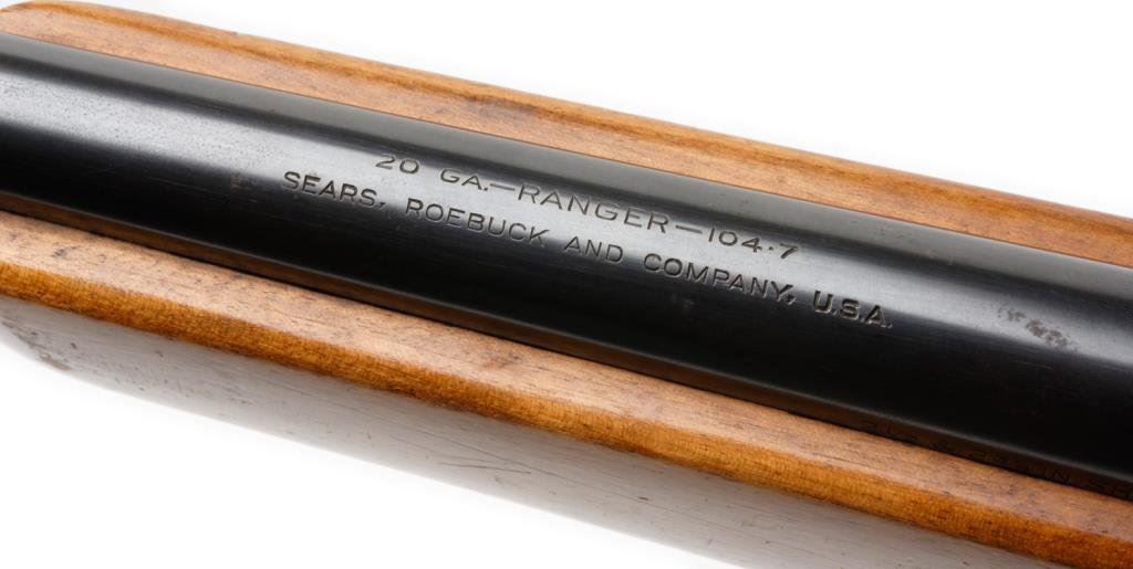 *Sears Ranger Model 104.7 bolt action shotgun, 20 gauge, 26” barrel, S/N 1050, blued finish, wood stock in overall very good to fine condition with fine bore, crisp action and minor storage mars to stock. Est.: $75-$150.