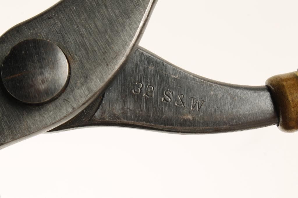Winchester bullet mold marked ".32 S & W" with blued finish and wood handles. Condition: This mold is in overall very good to fine condition showing the majority of its original finish with very good handles. EST.: $75-$150