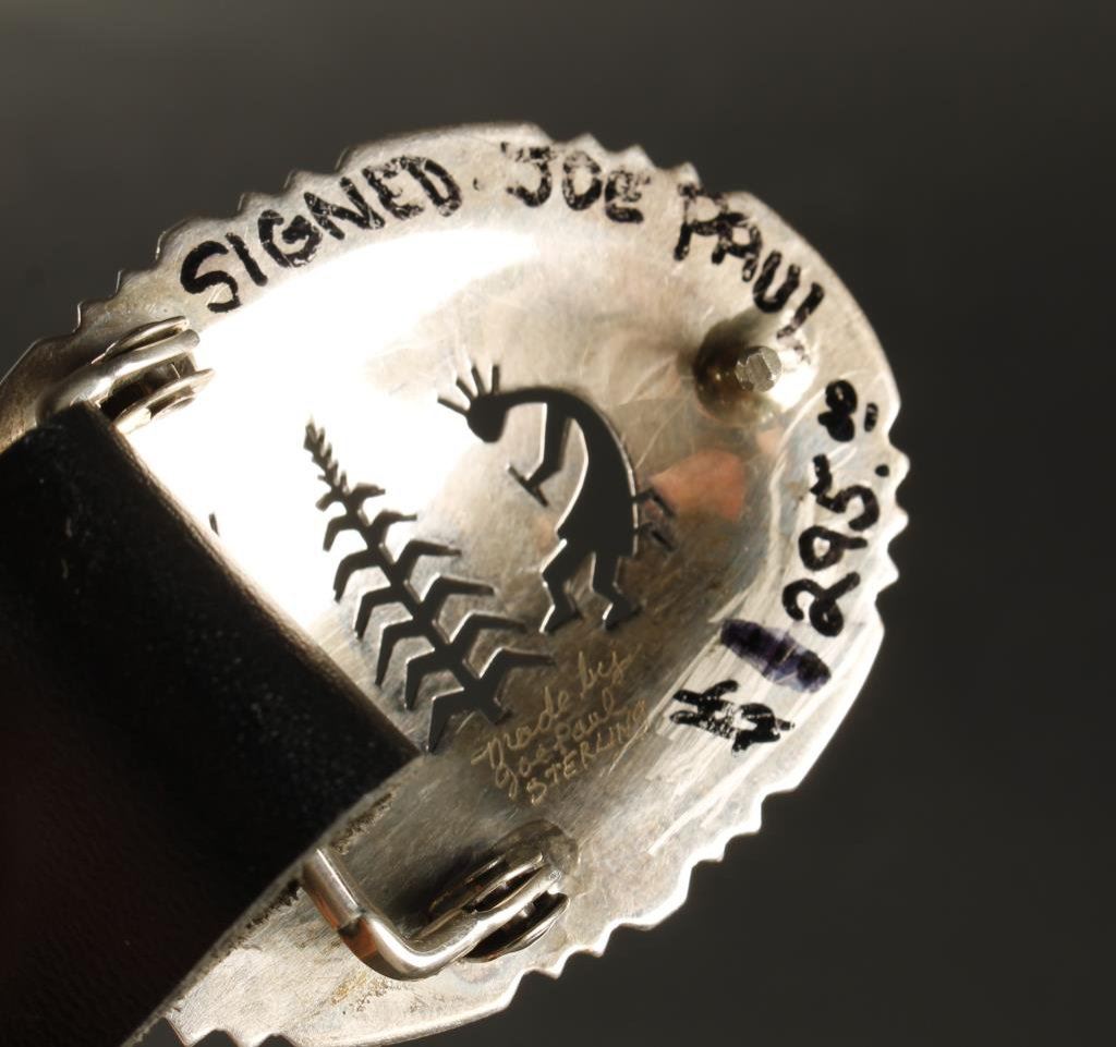 Lot 2000 Joe Paul 11 Conchos belt with matching Kokopelli designed buckle in very g