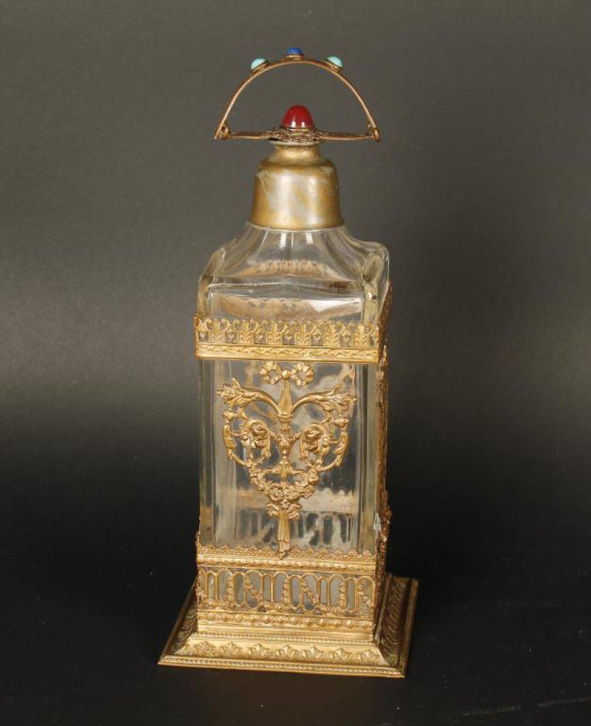 Lot 2018 Jeweled and crystal ladies vanity bottle in ornate holder circa about 1910