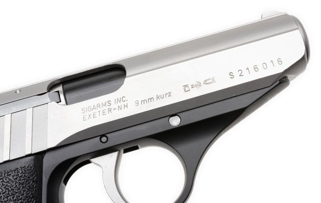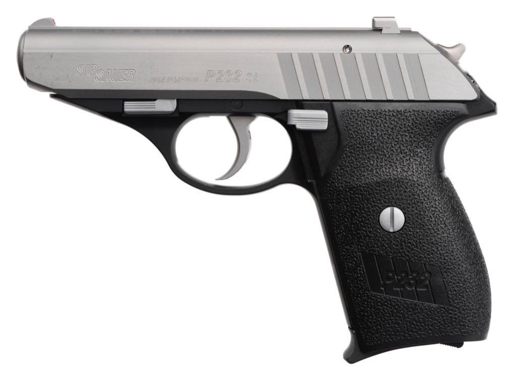 *Sig Sauer Model P232SL DA pocket semi-auto pistol, 9mm kurz caliber, 3.5” barrel, S/N S 216016, stainless and composite, stippled black hard rubber grips in excellent condition showing little if any use. Est.: $350-$700.