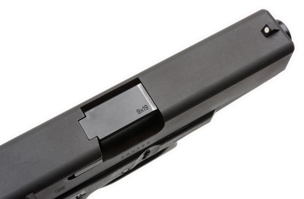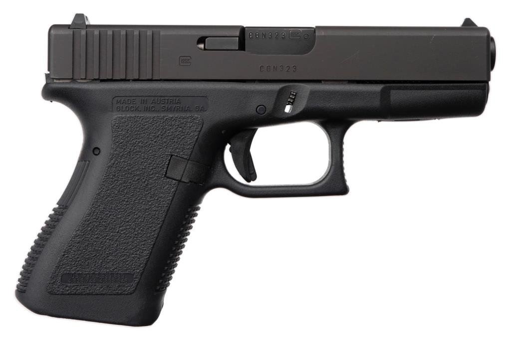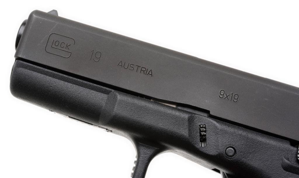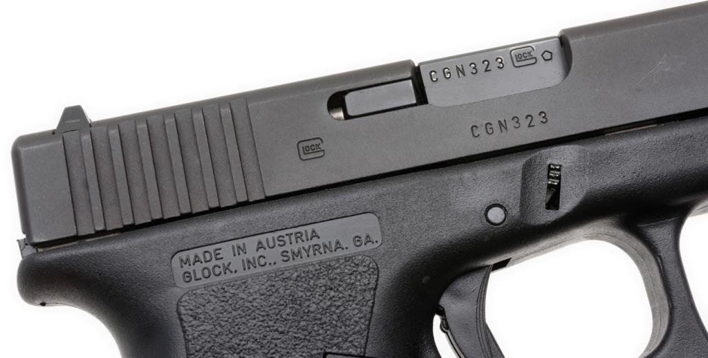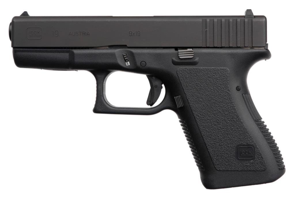 *Glock Model 19 semi-automatic pistol, 9mm caliber, no magazine, 4” barrel, S/N CGN323US, black finish, in excellent condition showing little use. Est.: $350-$700.