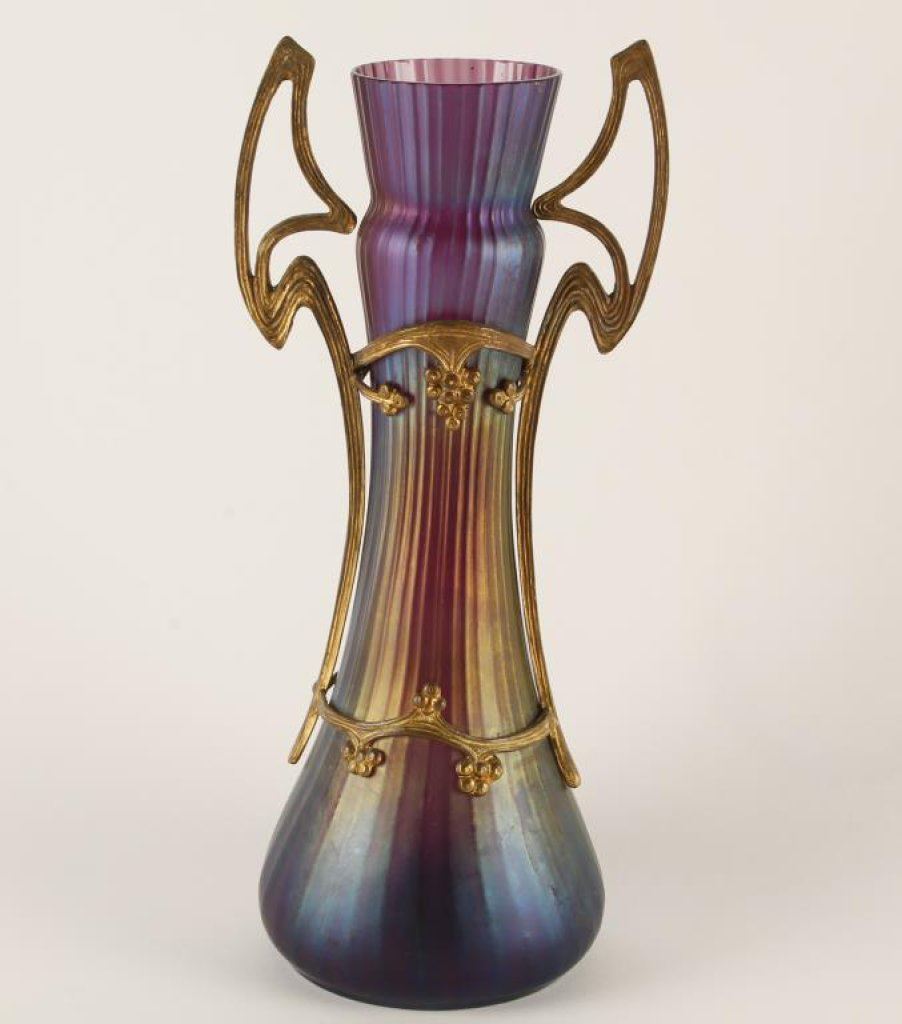 Rindskopf art Nouveau vase with metal armature mount circa 1900. Est.: $250-$500