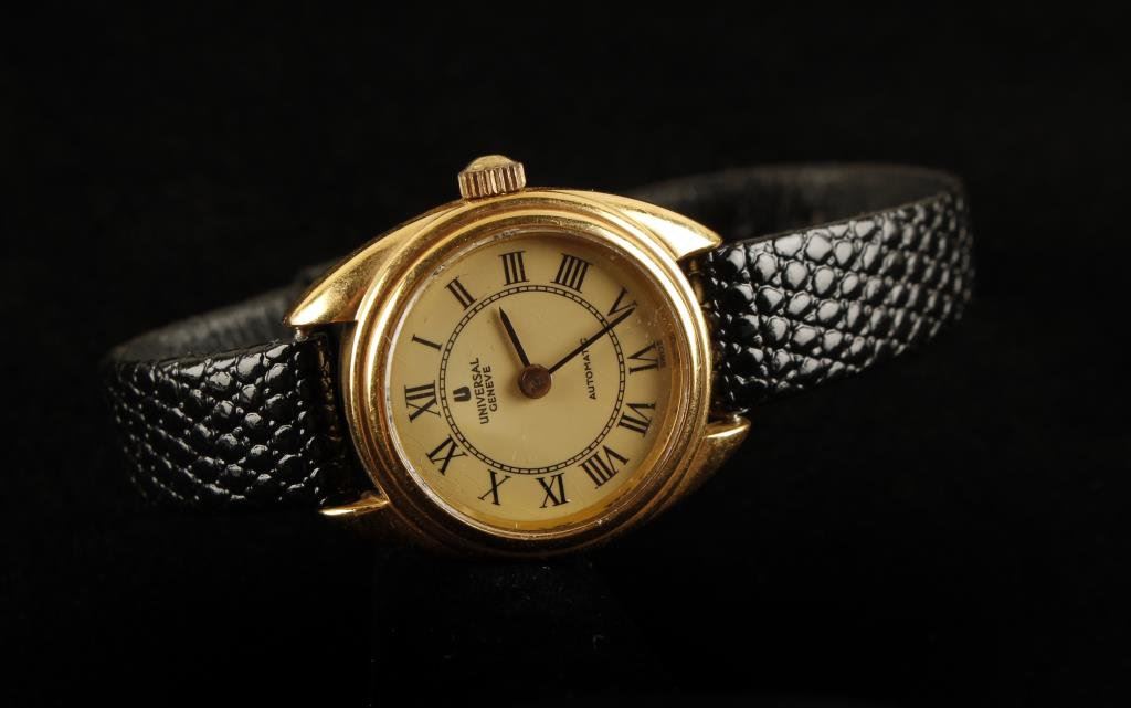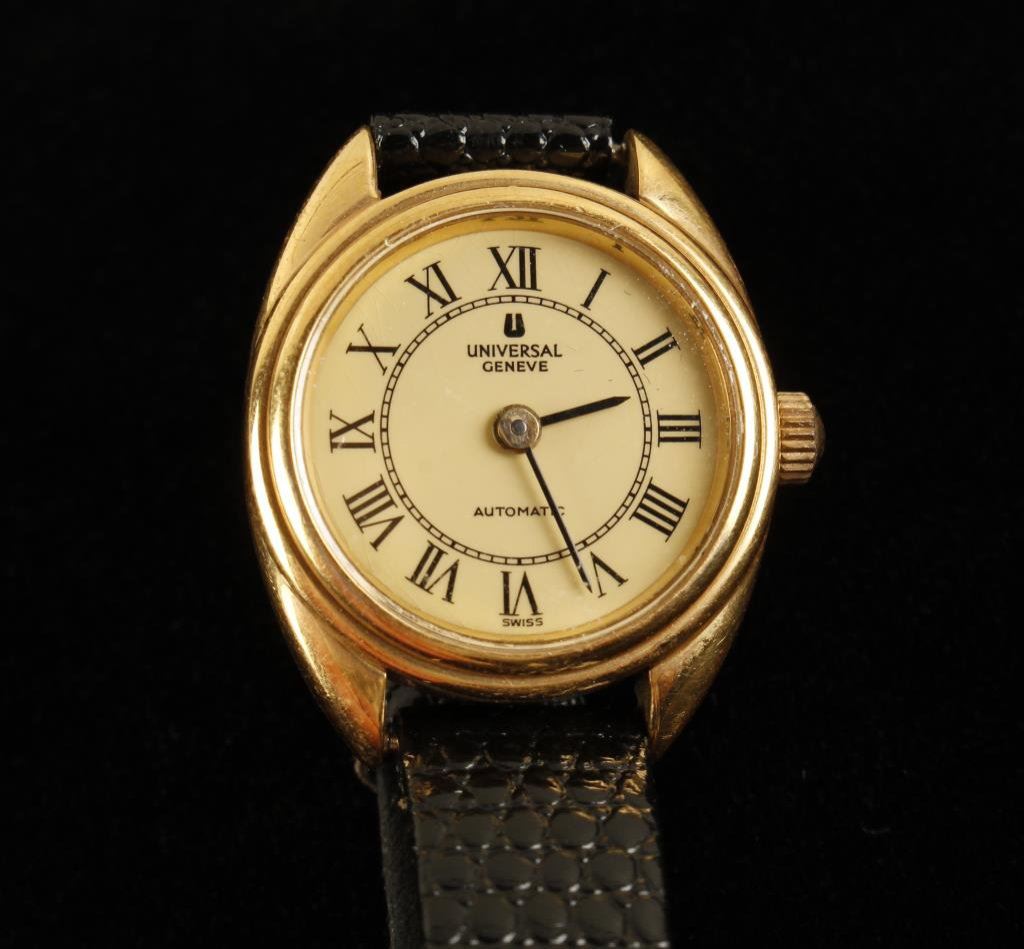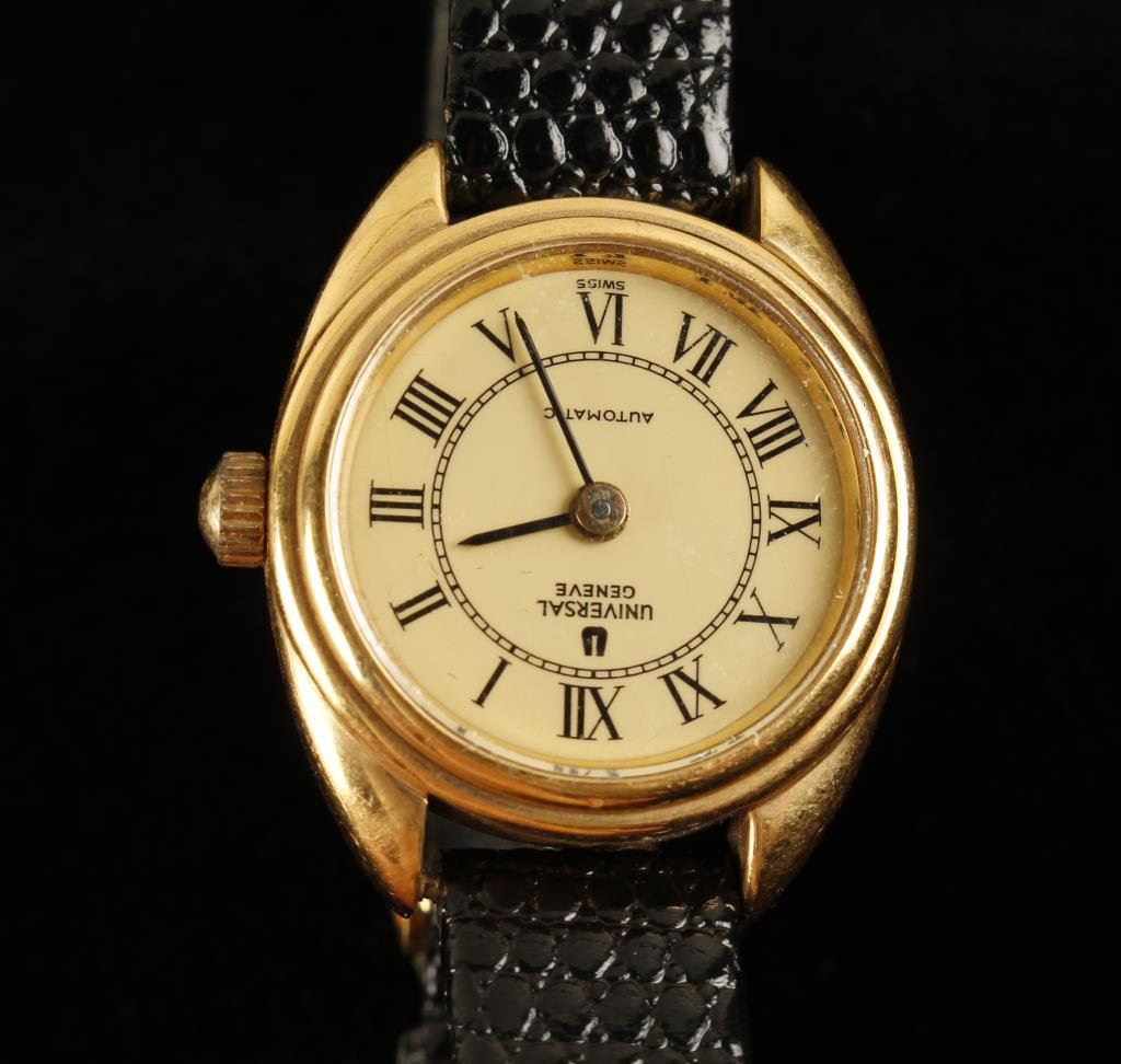 18K gold Universal Geneve. Highline Swiss wristwatch, Vintage and runs. Est.: $350-$700