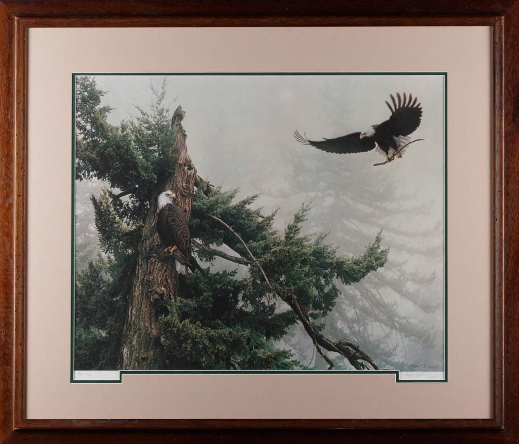 Large framed and expertly matted limited edition (66/98) Artist’s Proof, hand signed by Robert R. Copple (1963- ) of Bald Eagles, approximately 33” x 37” overall. Est.: $200-$400.