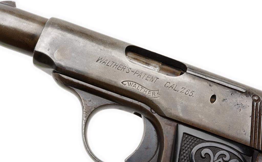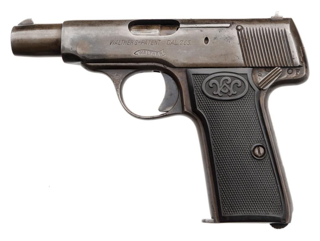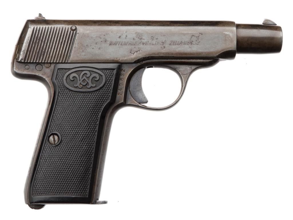**Pocket Walther semi-automatic pistol, 7.65mm caliber, S/N 240632, in overall good condition showing scattered pitting primarily on the right side of slide; good action and grips. Est.: $300-$600.