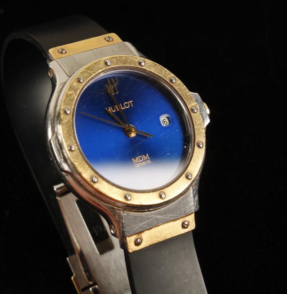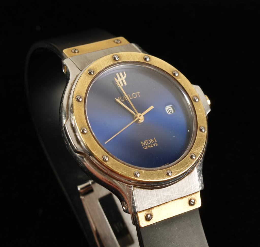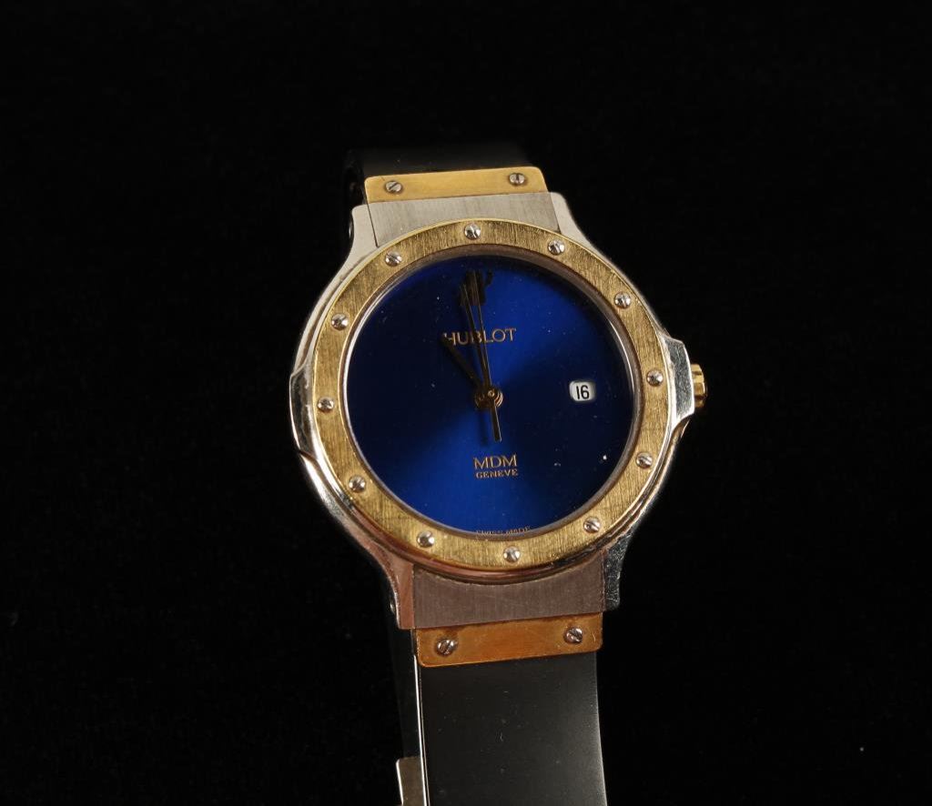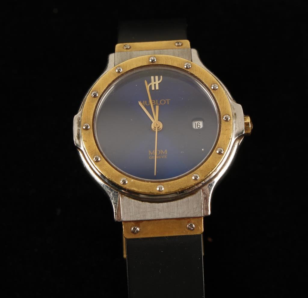 Ladies Hublot watch in 18K gold and stainless in a high fashion design. Runs and excellent. Est.: $850-$1700