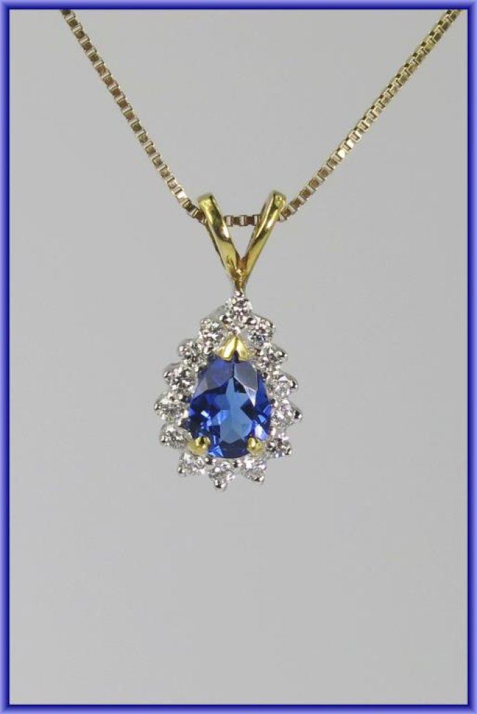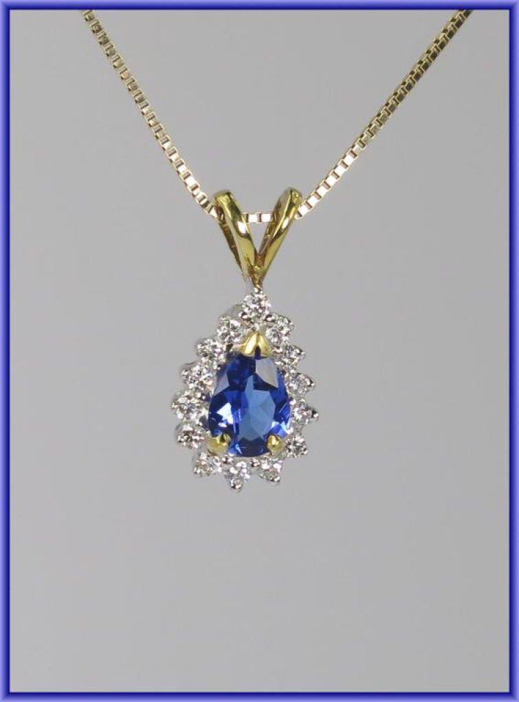 Intensely Vibrant Fine Tanzanite and Diamond Pendant featuring a FINE ‘AAA’ quality pear shaped tanzanite weighing approx. 1.00 carat in halo setting with 14 ‘IDEAL’ cut Diamonds with approx. 0.60 carats with F-G color and VVS/VS clarity set in 14 karat two-tone gold. Retail $2,000-$3,000 Estimate $1,500-$2,000