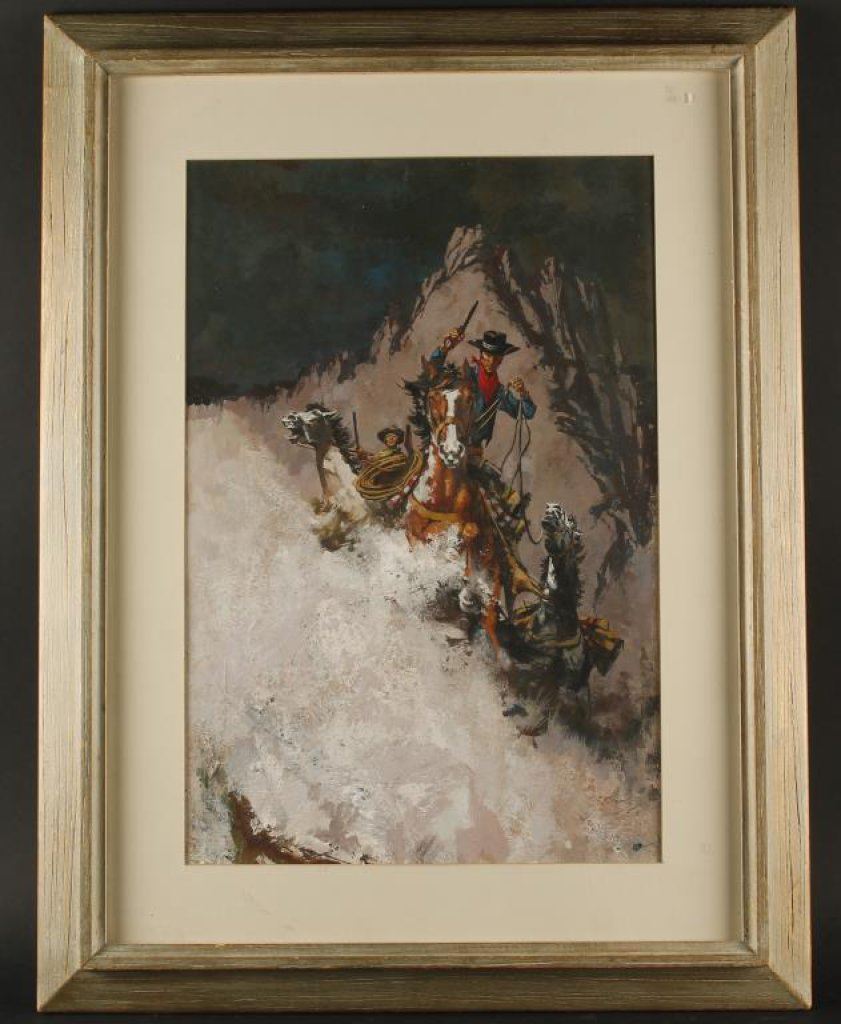 Gouache on paper signed lower right C. Hanfman measuring approximately 21” x 14” nicely framed. The artwork has a lot of quality and action. Est.: $600-$1,200.