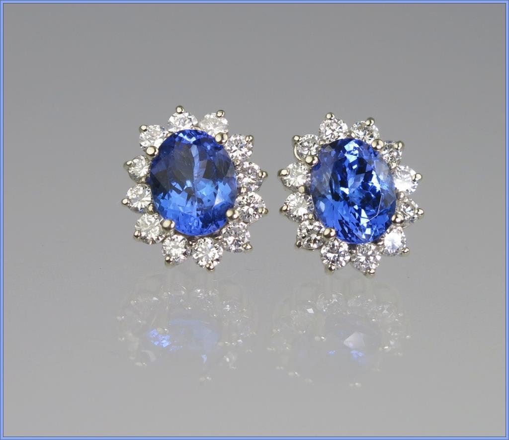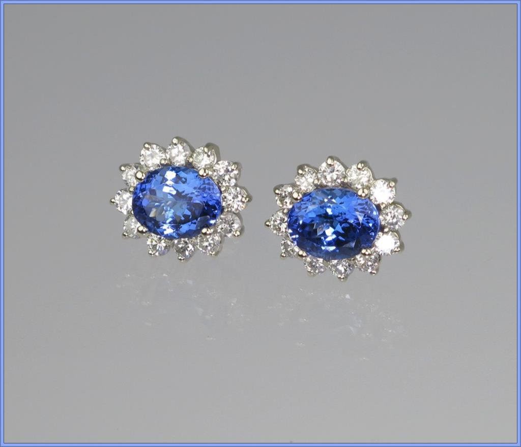 Lot 2189 Exquisite Pair of Exceptionally FINE Tanzanite and Diamond Earrings featur