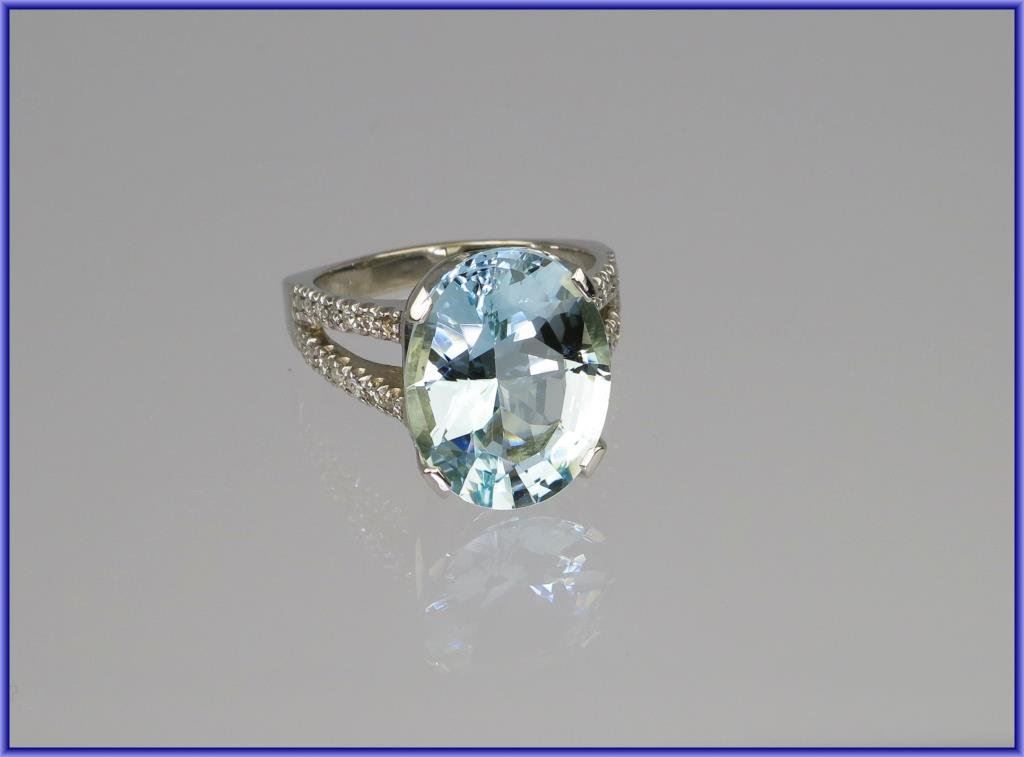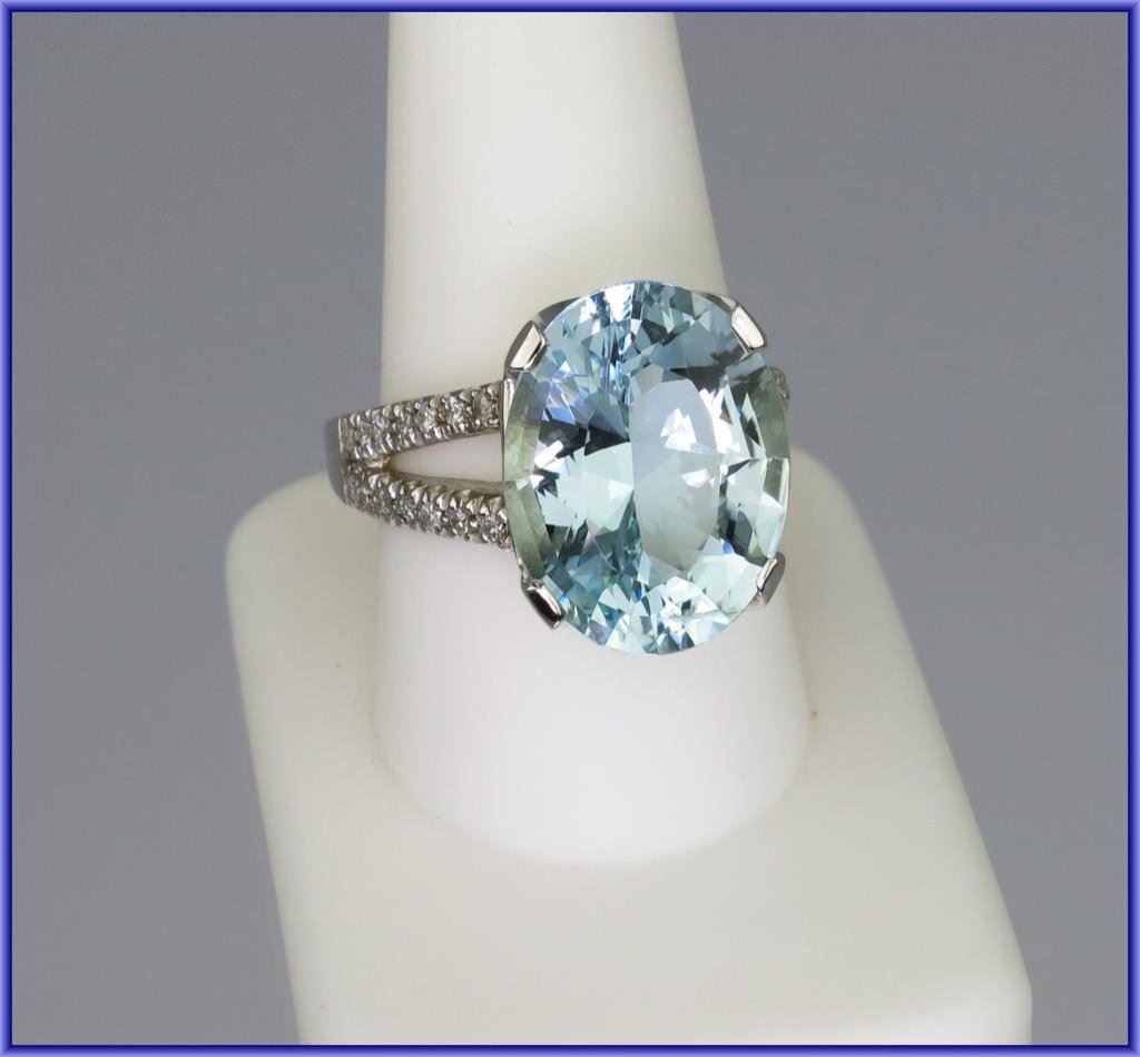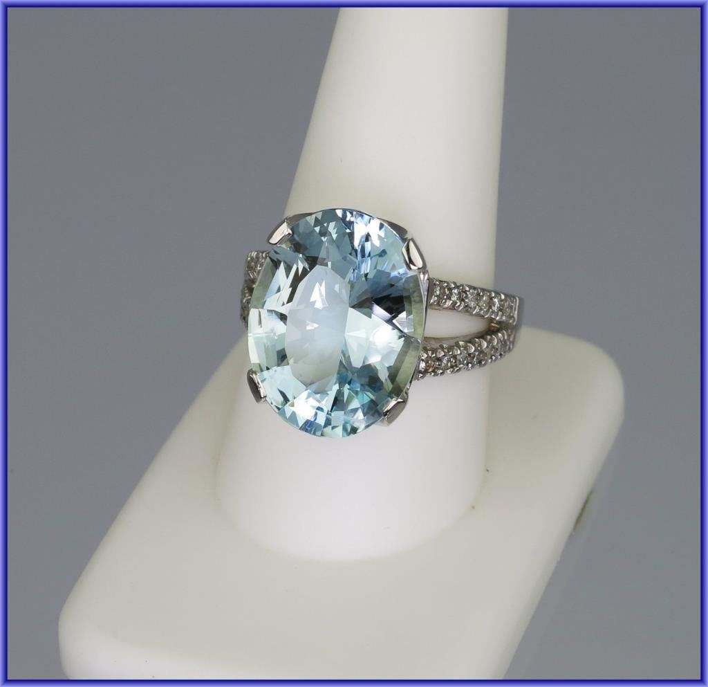 Lot 2191 Spectacular Custom Made FINE Aquamarine and Diamond Ring featuring a 10.97