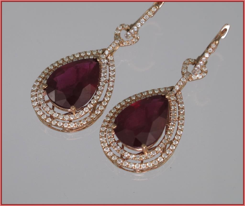 Lot 2192 Pure Glamor Pear Shaped Ruby and Diamond Drop Earrings featuring 2 rubies