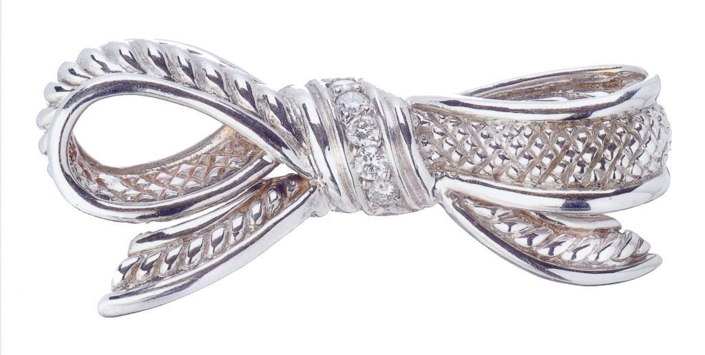 Lot 2205 Judith Ripka signed broach in bow shape. Fine quality. Est.: $750-$1500