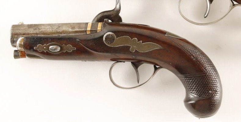 Lot 2206 Deluxe Henry Deringer percussion pistol with double-wide gold bands, silve