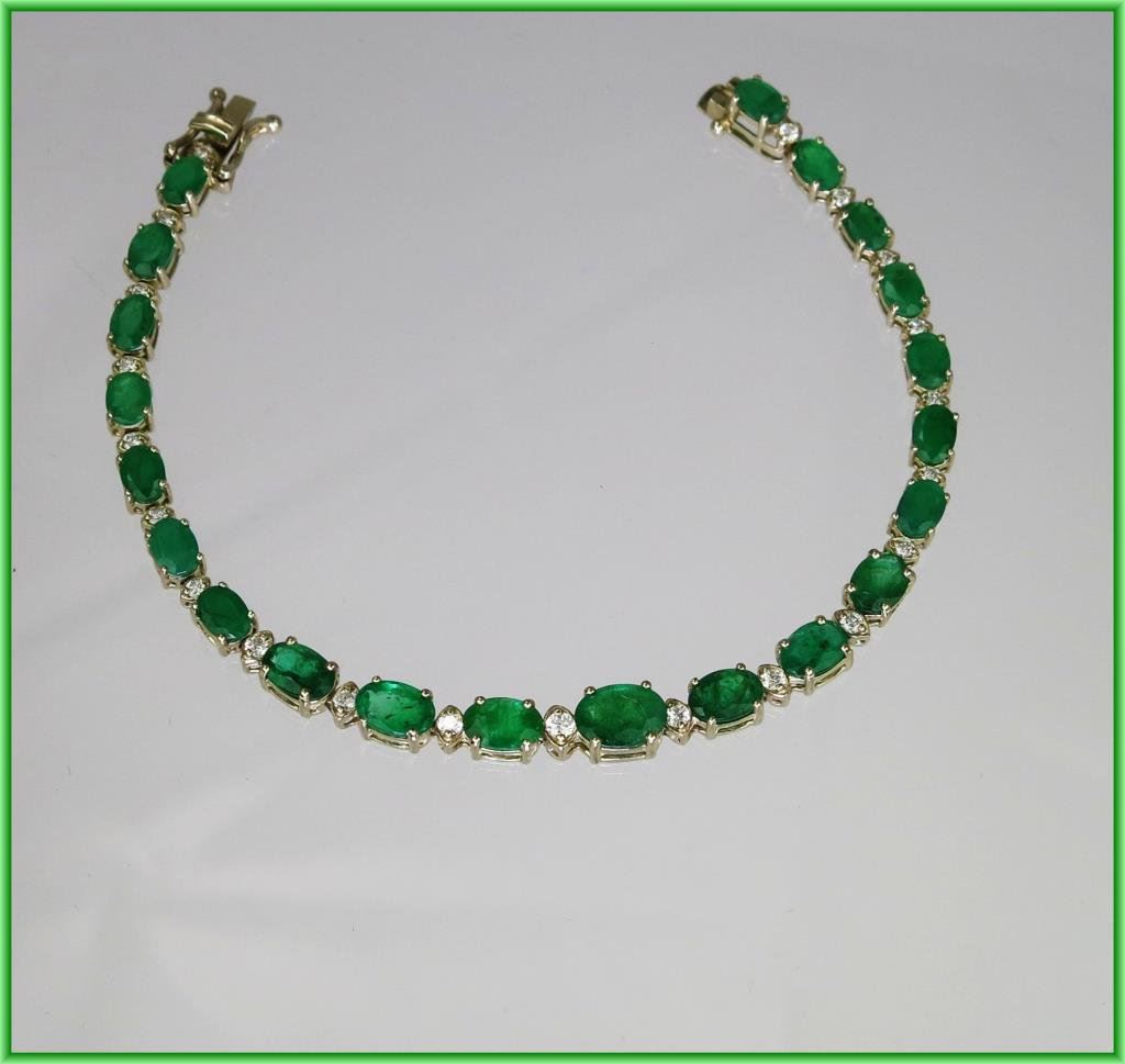 Elegant Emerald and Diamond Bracelet featuring 21 oval cut graduated emeralds weighing approx. 6.00 - 8.00 carats with 20 ‘IDEAL’ cut Diamonds with F-G colors and VS/SI clarity set in 14 karat white gold. Retail $4,000-$6,000 Estimate $2,000-$3,000