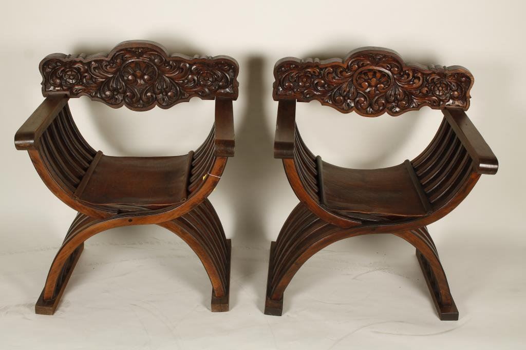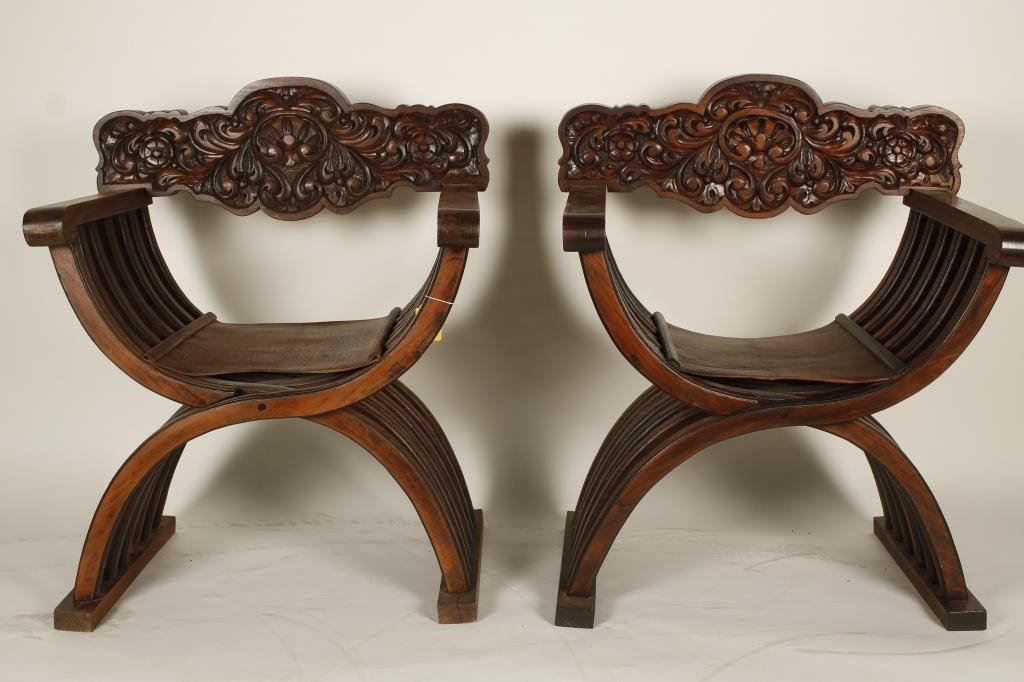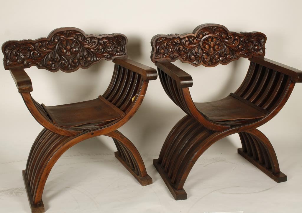 Lot 2234 19th Century or earlier Spanish Colonial chairs with carved backs; good to