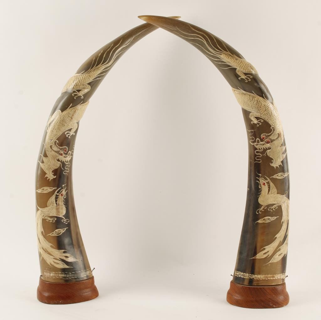 Lot 2302 Carved horns from Asia with dragons. Est.: $100-$200.