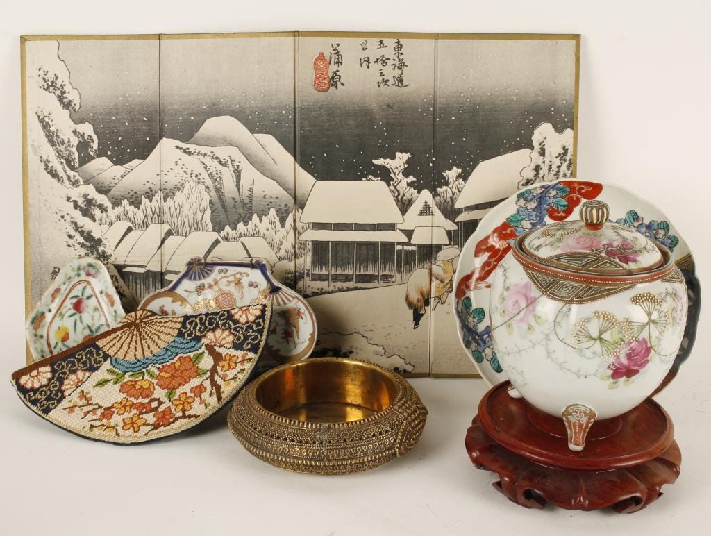 Lot 2303 Hand painted Nippon biscuit jar signed with 6 misc. small items. Est.: