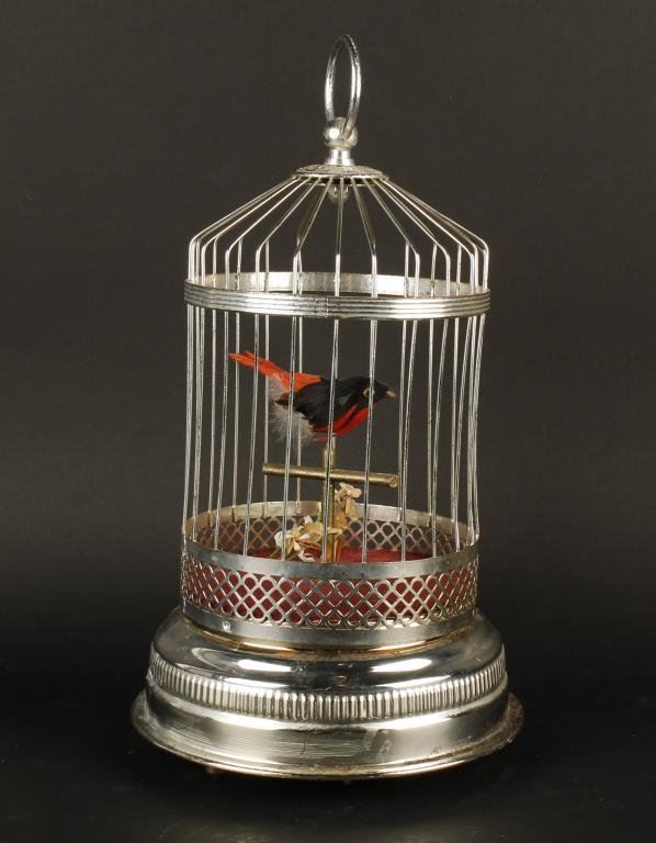 Wind-up and battery musical Bird box; 20th Century; bird is broken but sings well. Est.: $50-$100.
