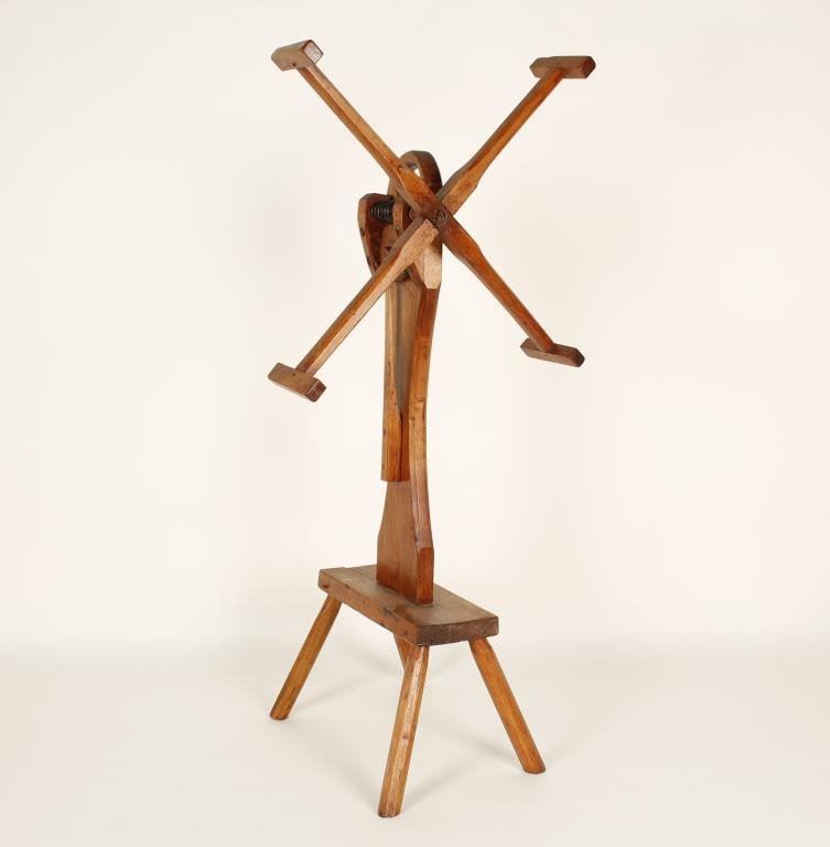 hand carved primitive yarn winderl, 18th to 19th Century; possibly American; approximately 46.5” in height. Est.: $100-$200.