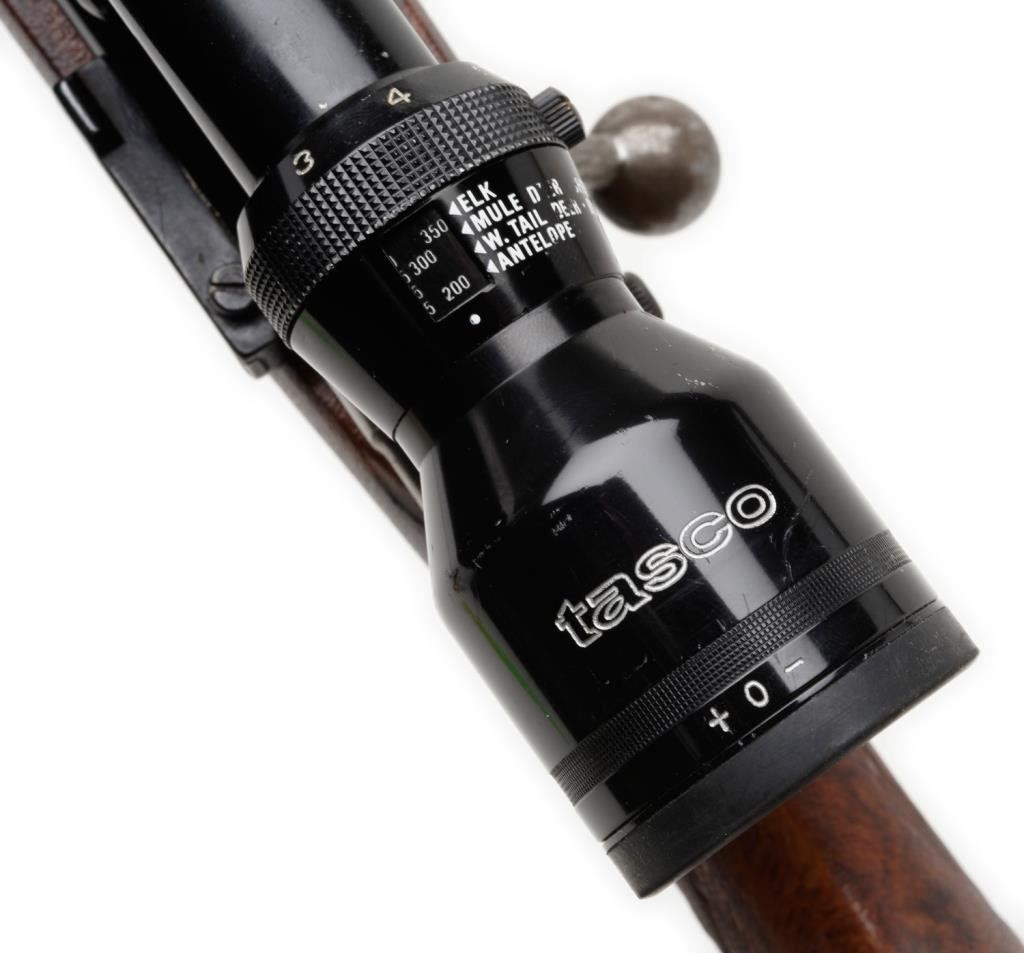 Custom Mauser bolt action rifle, .358 Norma caliber, Serial #D-08660. The rifle is in overall very good condition with a 27” blued barrel with muzzle break. The barrel and action retain nearly all of their blued finish with the bolt in the white. The synthetic stock is in excellent condition with sling swivel studs and a Decelerator butt pad. The bore is excellent, action crisp and markings sharp. The rifle is topped with a one-piece scope mount and Tasco 3x9 variable power scope. A nice custom Mauser in a great caliber that appears to have seen little use. Est.: $250-$350.