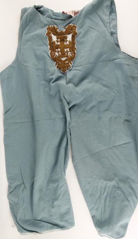 Gothic style tunic with crest in L-XL size by Museum Replicas; made in India; type seen at Medieval Times. Est.: $50-$100.