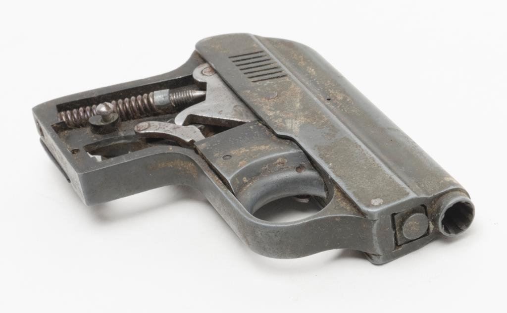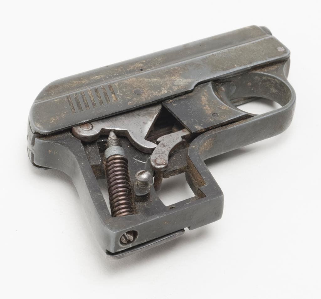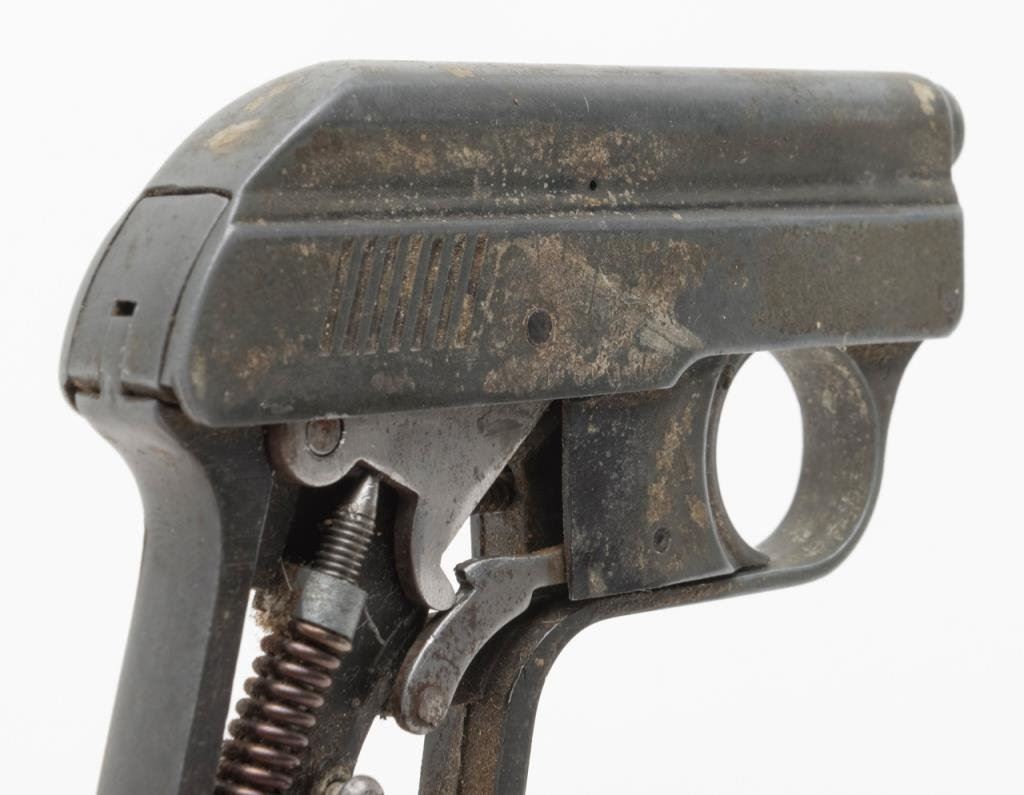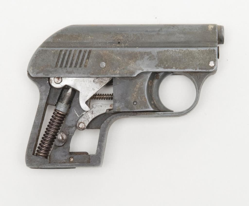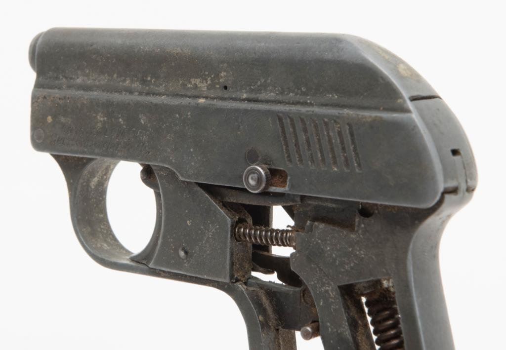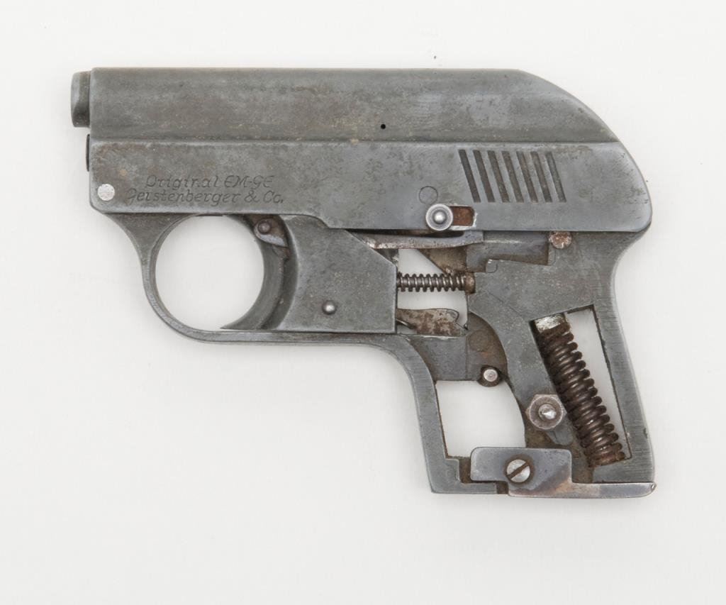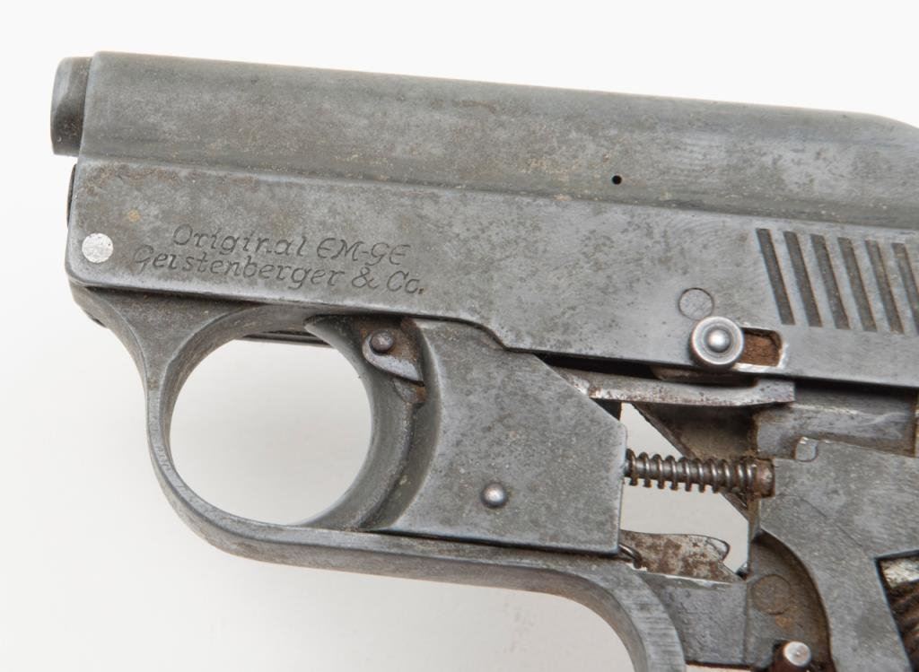 An Original EM-GE gas gun. The gas gun is marked “Gerstenberger & Co.”, appears to be non-functioning and is sold for parts only. No grips with all metal going to a grey patina. An interesting piece. $75-$125.