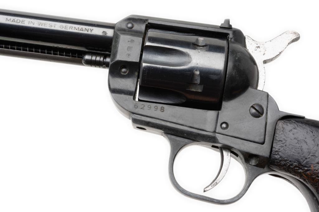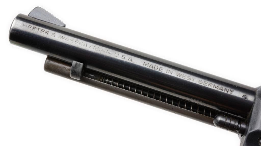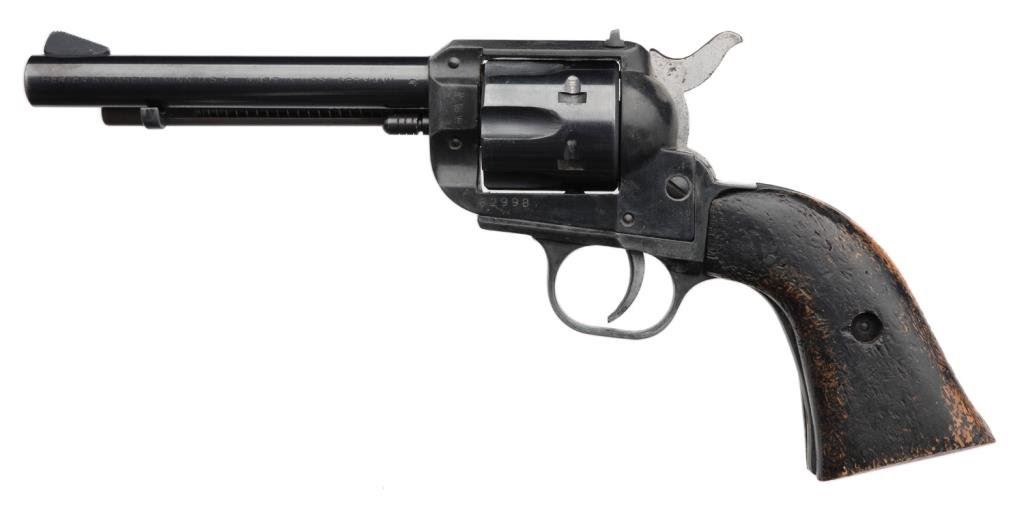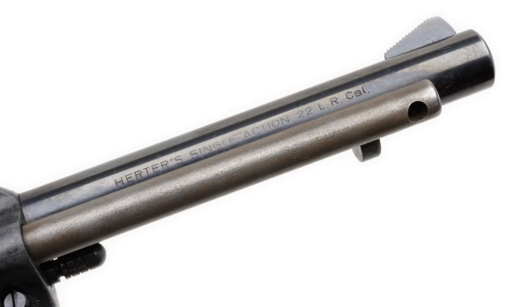 **Herter’s copy of a SAA revolver, .22LR caliber, 5” barrel, S/N 52998, black finish, replaced wood grips in overall good condition with working action. Est.: $125-$175.