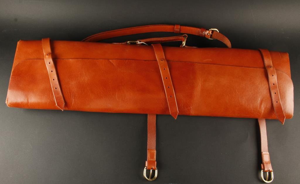 Modern heavy duty leather shotgun case in fine condition. Est.: $100-$200.