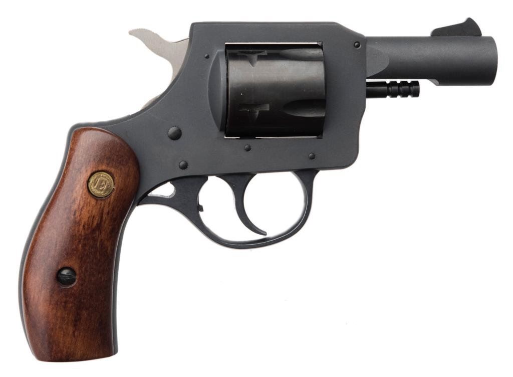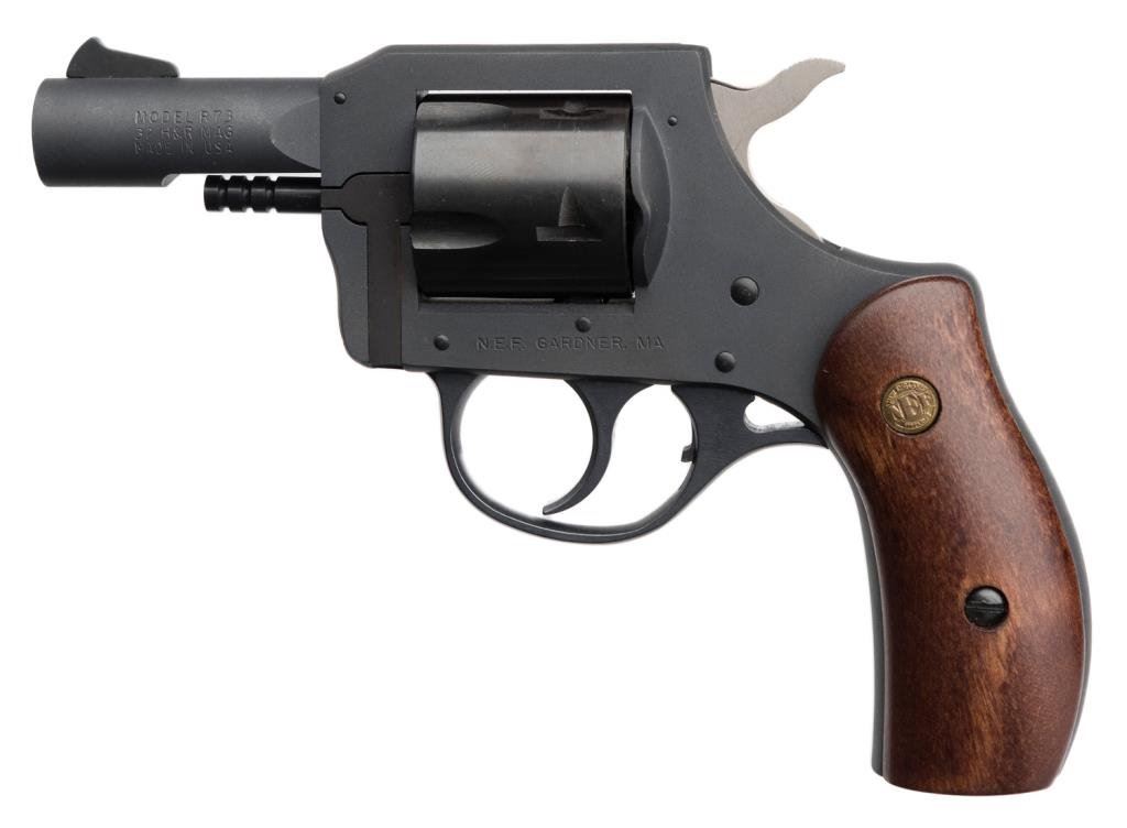 *New England Firearms Model R-73 DA revolver, .32 H&R Mag. caliber, 2.5” barrel, S/N NG004593, mat black finish, wood medallion grips in like new condition. Est.: $100-$175.