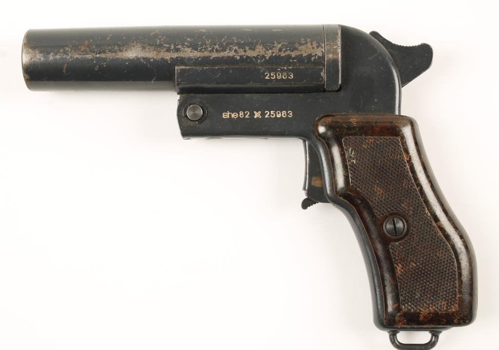 Lot 2464 Czech flare pistol, grey finish, checkered brown grips, #25963 in overall