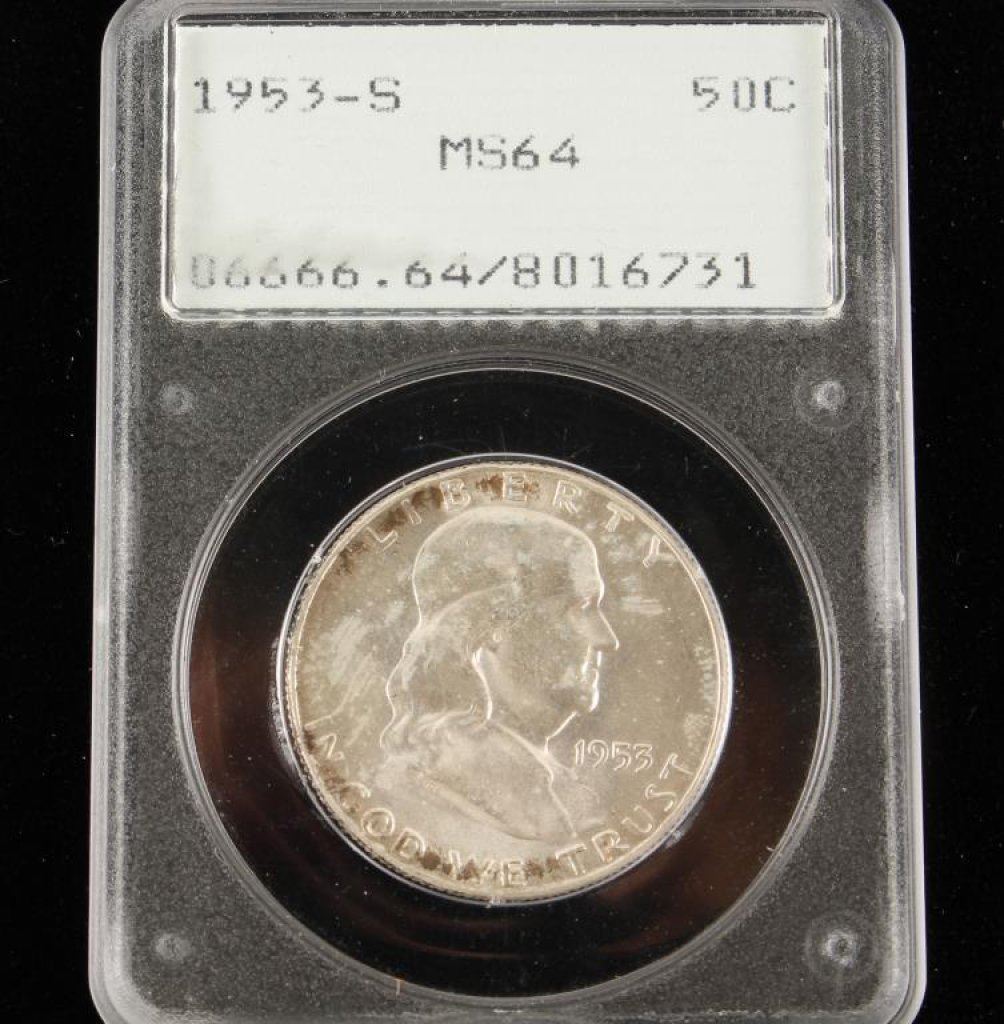 Lot 2469 1953-S MS 64 Franklin 50 cent piece in slab "old PCGS holder. Est:$60-120