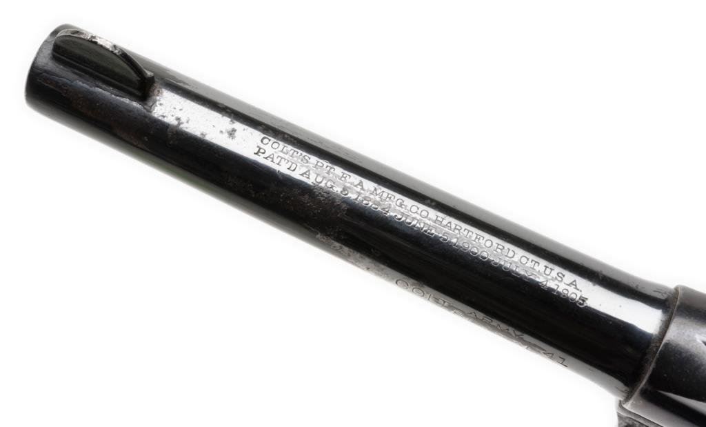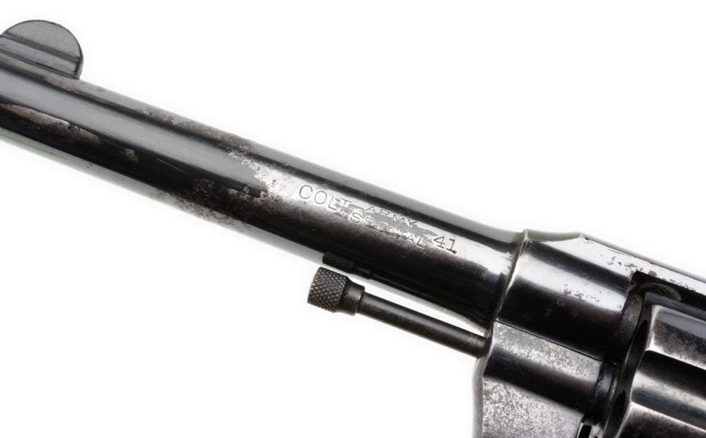 **Colt Army Special DA revolver, .41 caliber, 5” barrel, S/N 351449, blued finish, checkered hard rubber grips in overall good condition showing some scattered erosion and areas of pitting; considerable original blue with some re-finishing on the muzzle area; good grips, action and bore. Est.: $300-$600.