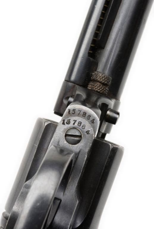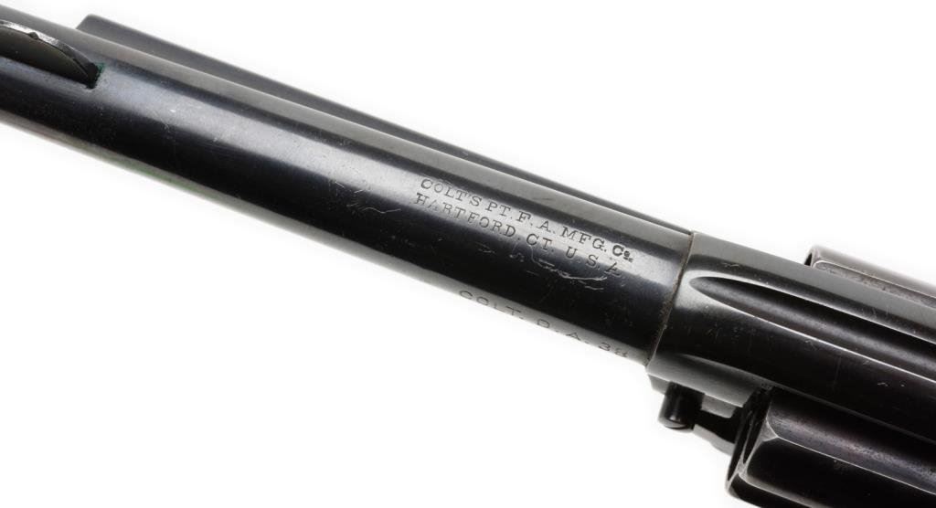 **Colt Model 1877 DA revolver, .38 caliber, 4.5” barrel, S/N 157864, re-blued finish, checkered hard rubber grips in overall good condition with action working at time of description. Est.: $300-$600.