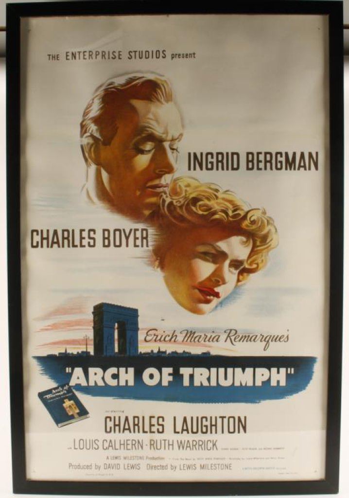 One sheet, 1948 original movie poster, mounted professionally for collection on linen from “Film Noir” era entitled, “Arch of Triumph” starring Charles Boyer, Ingrid Bergman and Charles Laughton. Est.: $300-$600.