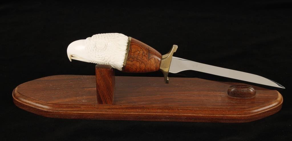 Lot 2510 Rare Gerber factory eagle carved marine ivory (legal) gripped knife with r