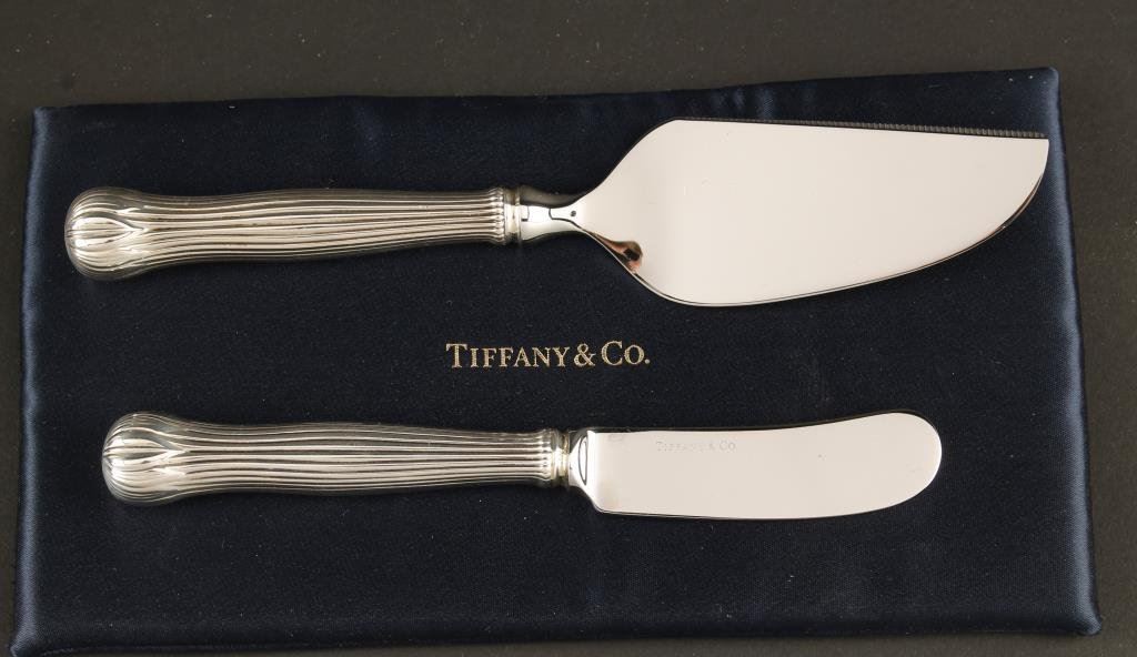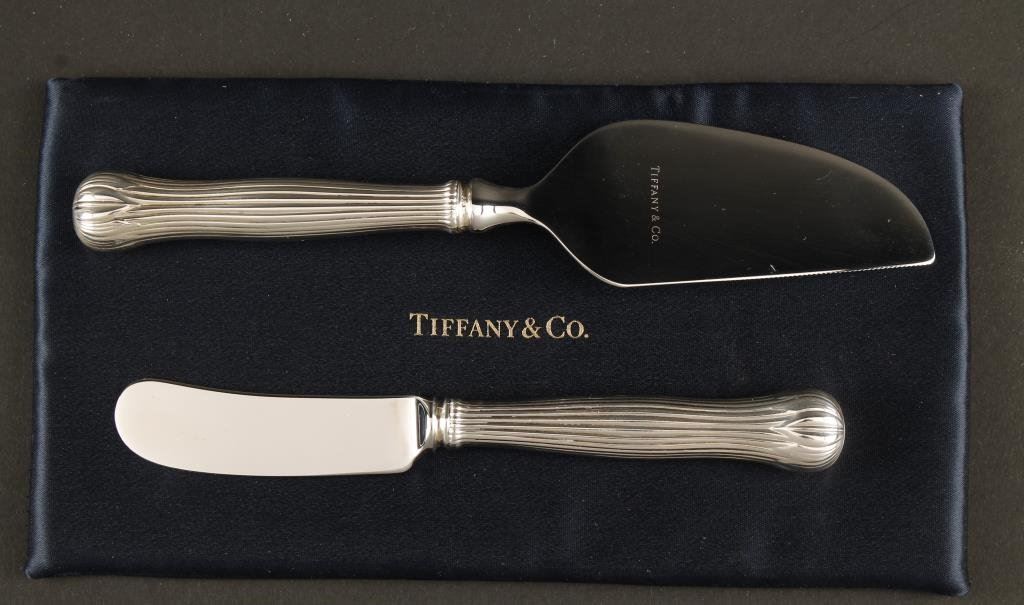 Lot 2523 Tiffany signed sterling silver cheese knives in original marked box with m