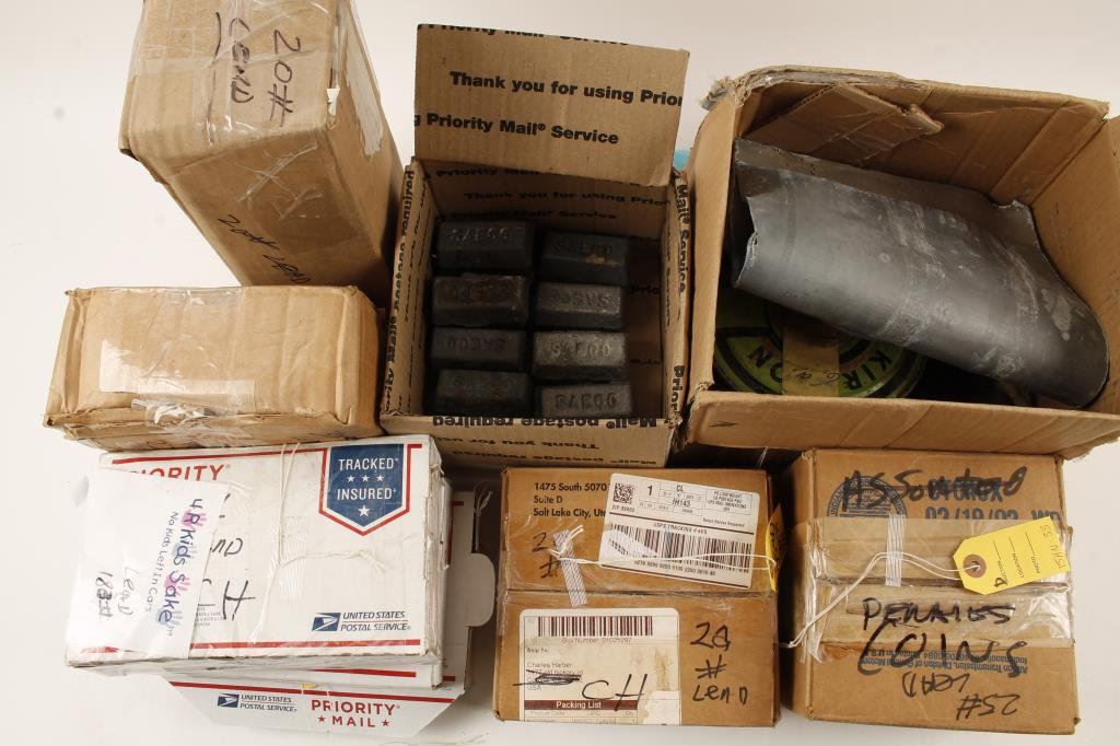 Bonanza re-loading lot including approximately 180 lbs. of re-loading lead, misc. bullets of various calibers including 7.65 x 53, etc.; bring your pick-up truck and a strong back! Est.: $100-$300.