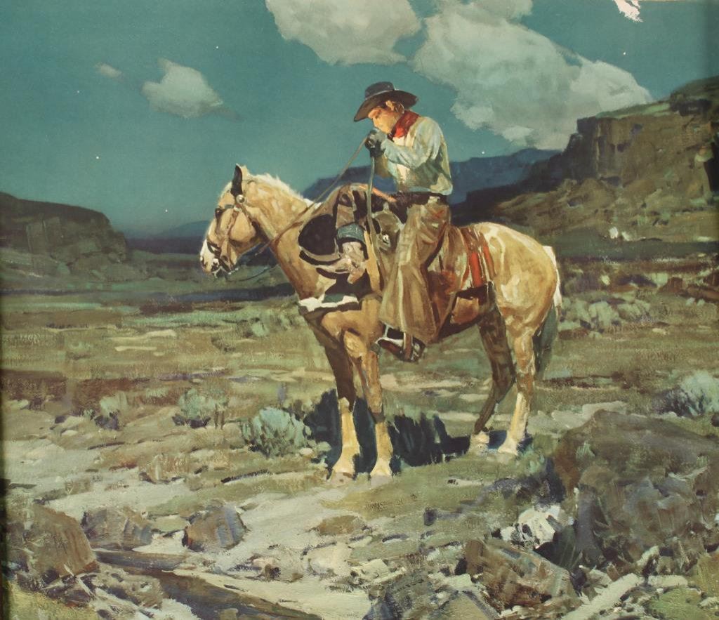 Color print entitled “Somewhere On The Range” by noted Western artist Frank Tenney Johnson (1874-1939), approx. 16” x 19.5”, from the Johnson Estate. Est.: $50-$75.