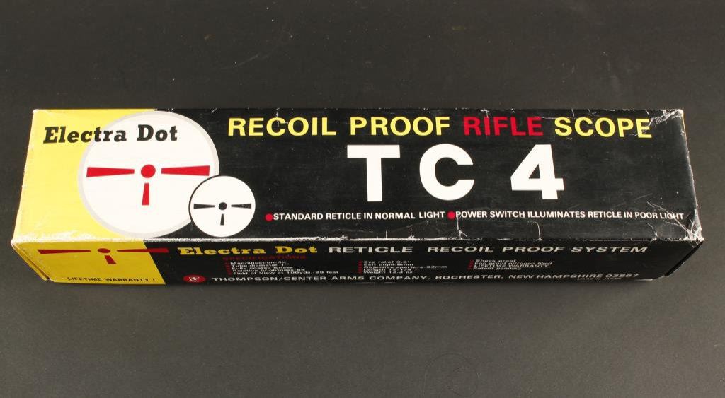 Electra Dot Recoil proof rifle scope Model TC 4 in like new condition in factory cardboard box with inserts. Est.: $50-$75.