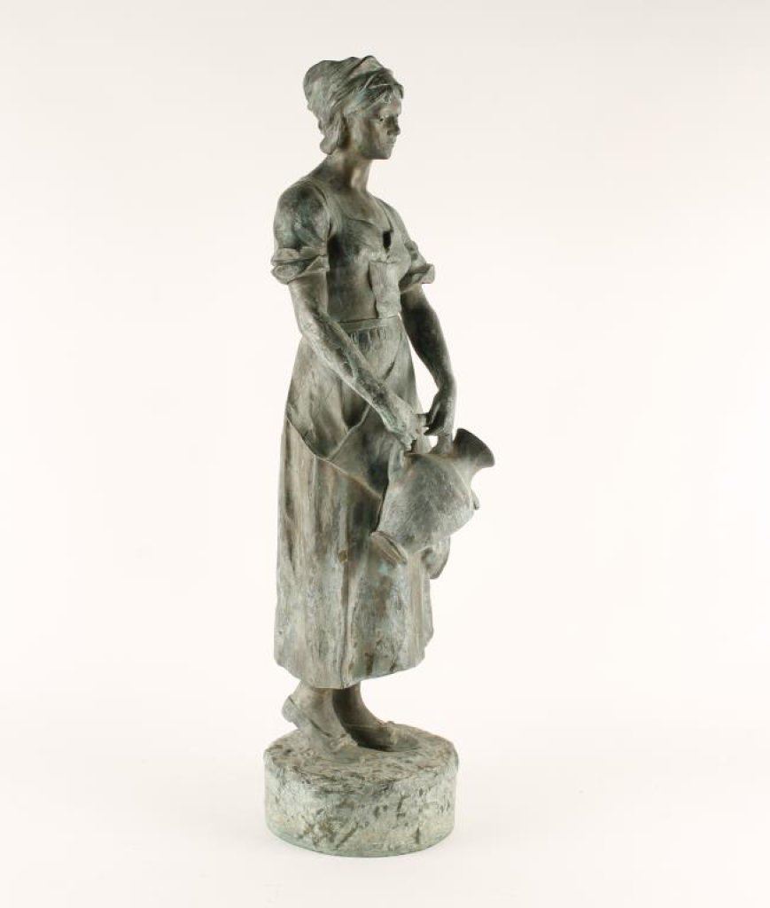 Lot 2635 Bronze of lady holding a water jug, approximately 24” in height including
