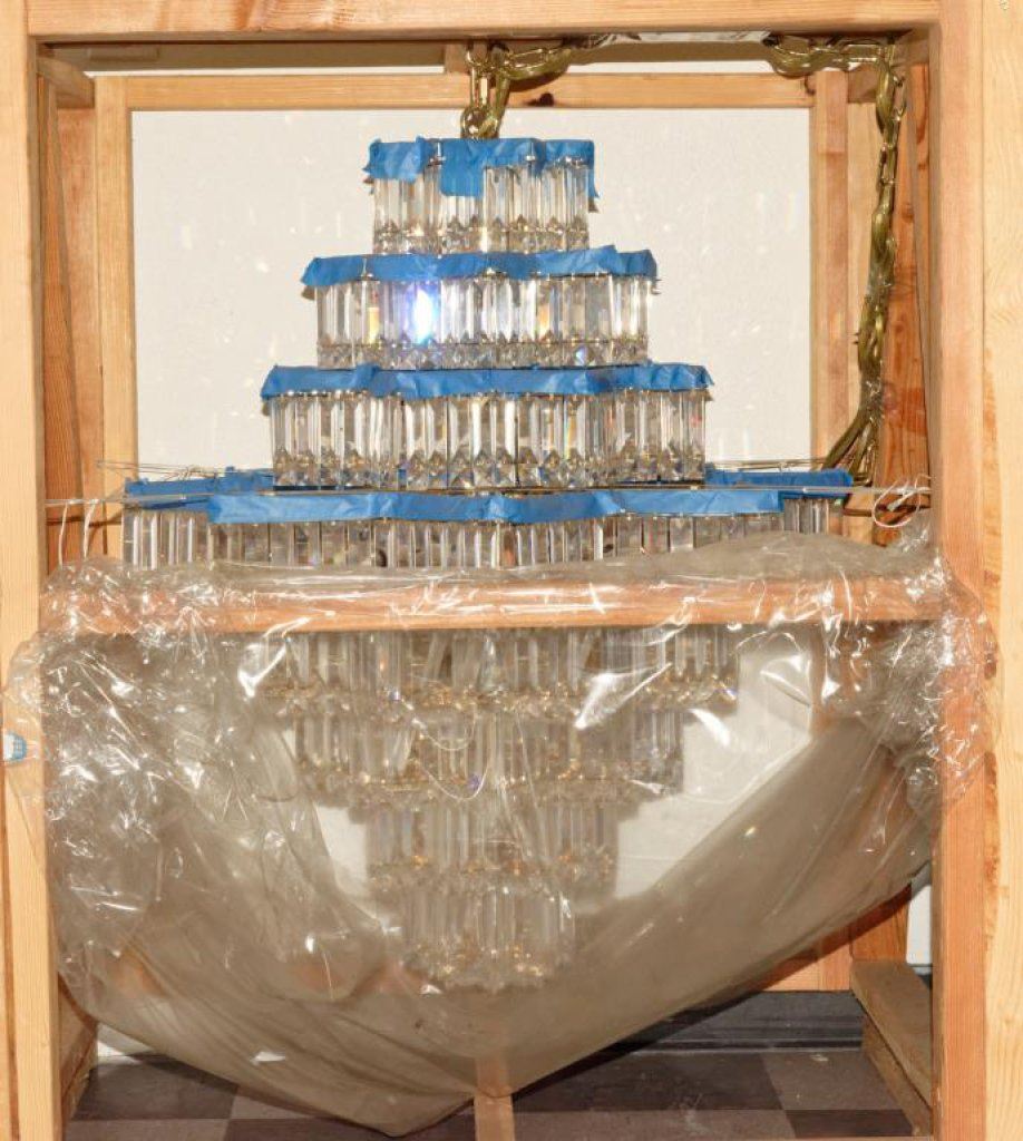 Lot 2675d Allen & Roth Chandelier in box; not used. Est.: $30-$60.