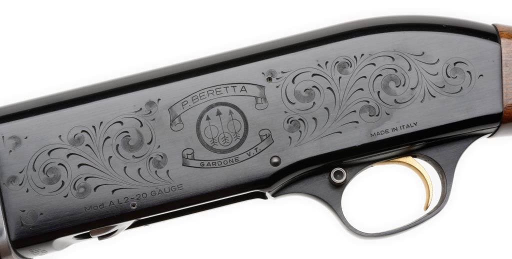 *Beretta Model AL-2 semi-automatic shotgun, 20 gauge, 26.5” ventilated rib barrel, no visible S/N, blued finish, checkered wood stock with rubber slip on butt pad in overall fine condition with fine bore, action and markings. Est.: $400-$600.