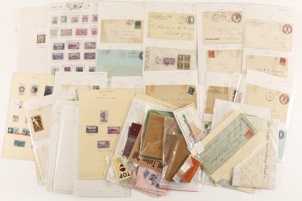 Lot of old documents, misc. checks, tobacco-related advertising and general collectible paper; also a stamp and envelop mini-collection with some possible “sleepers”. From the estate of the late Joe Kiser. Est.: $100-300