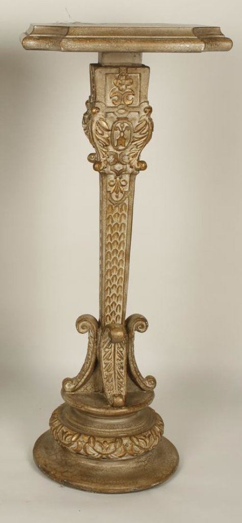 Painted wood and carved pedestal in French Provincial style; approximately 36” in height and 15” across top. Est.: $200-$400.