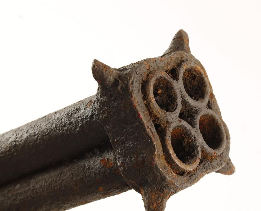 Lot 3004 Four barrel iron hand cannon, approximately 22.5” overall; age unknown.