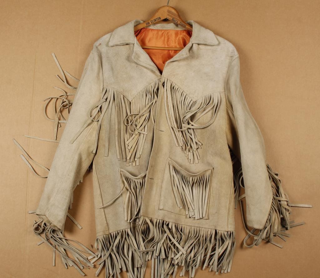 Fringed leather jacket, no markings but appears to be about Medium size. Est.: $50-$75.