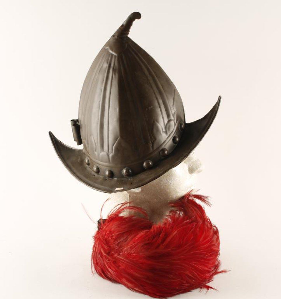 Lot 3007 Reproduction of a cabaset helmet with red feathers. Est.: $75-$150.